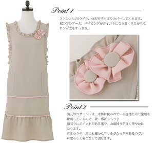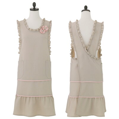 アームボーテ アリエルエプロン エレガントベージュ&ペールピンク ARE14 メール便不可 フリークロス/タブリエ/かわいい/ワンピース/マタニティ/お尻が隠れる/エレガント/敬老の日/日本製