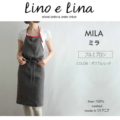 リーノエリーナ lino e lina Mila ミラ フルエプロン エプロン ポワブル×レッド 麻 グレー リネン 100% かわいい おしゃれ プランド シンプル ナチュラル ファッション ロング エレガント フェミニン A204【あす楽/土日祝対象外】