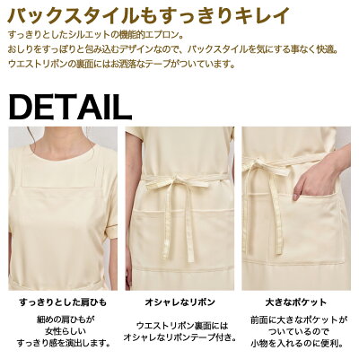 -バックスタイルもすっきりキレイ- すっきりとしたシルエットの機能的エプロン。