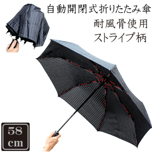 【送料無料 一部地域を除く】【ストライプ柄 自動開閉傘 3段 折りたたみ傘】58cm 7本骨ミニ傘 紳士傘 グラスファイバー耐風骨 テフロン加工【耐風傘】ギフト