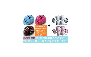 SG基準合格のジュニア用ヘルメットと手のひら・ひじ・ひざをしっかりカードするプロテクターのセットです。