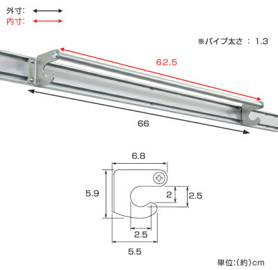 サイズ約 幅66×奥行6.8×高さ5.9(cm)内容量1個材質ハンガー:アルミパイプ金具:スチール塗装金具固定用ネジ・角ナット・取り付け用ネジ:スチールメッキ生産国日本製備考安全荷重:約10kg※壁掛けレール専用パーツです。